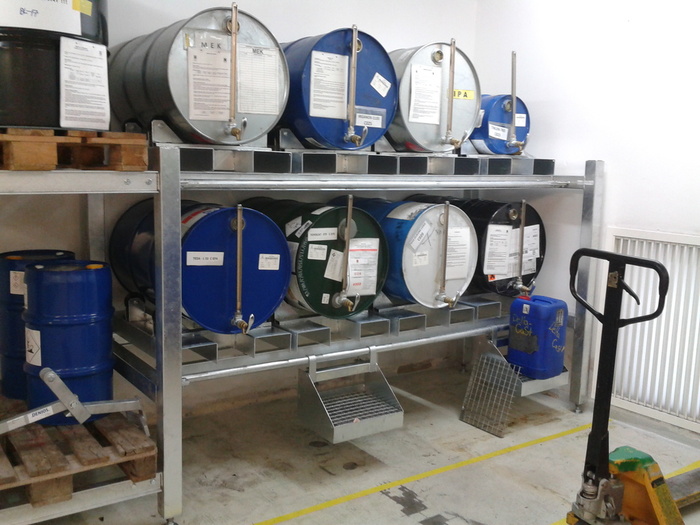 - Regály jsou určeny pro uložení olejů a jiných hořlavých i nehořlavých kapalin v sudech. Konstrukce regálu je vyrobena z ocelových profilů. Povrchová úprava konstrukce a záchytných van žárovým pozinkováním.